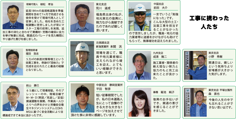 当社は、この路線のうち、下鱒沢地区、江刺地区、倉沢地区の総延長約18kmの舗装工事を担当し、7か月という、かつてない短期間で竣工することができ、当初予定より4か月早く開通することができました。