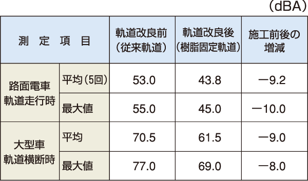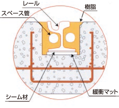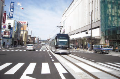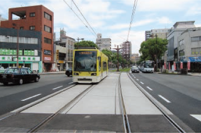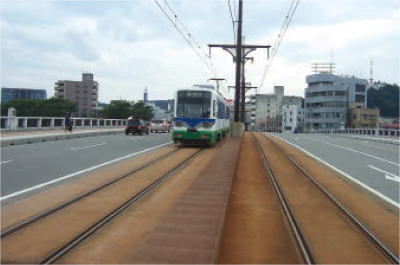 ※樹脂固定軌道は電車の揺れや騒音の少ない制振軌道として、平成17年度に国土交通省の「LRT総合整備事業」 の対象になりました。