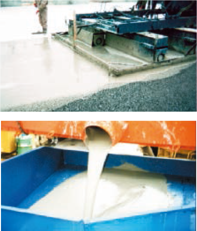 半たわみ性舗装に使用するセメント、樹脂、骨材および各種の混和剤を工場でプレミックスした、高品質な半たわみ性舗装用セメントミルク材料です。