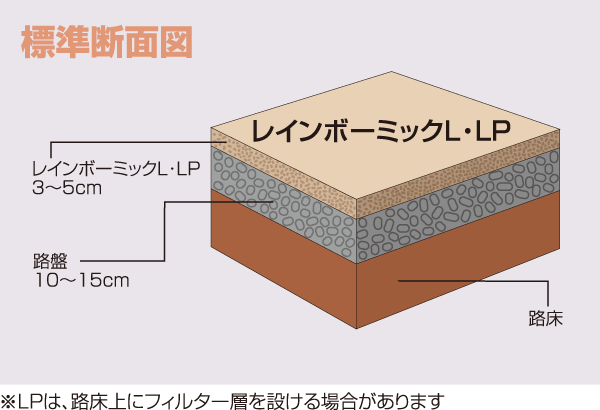 また、粒度等を変えることにより、透水性タイプとすることも可能です。(透水タイプ:LP)
