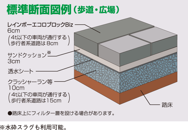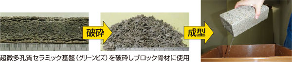 レインボーエコロブロックBizは超微多孔質セラミック基盤の破砕材を用いたインターロッキングブロックです。