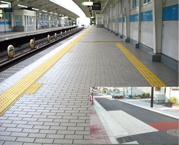 カテゴリー: 合成樹脂系, 景観舗装,プラットホーム・改札口・コンコース, 建物中庭・エントランス, 歩道, 歩道橋, 遊園地, 駐車場