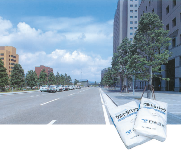 半たわみ性舗装に使用するセメント、樹脂、骨材および各種の混和剤を工場でプレミックスした、高品質な半たわみ性舗装用セメントミルク材料です。