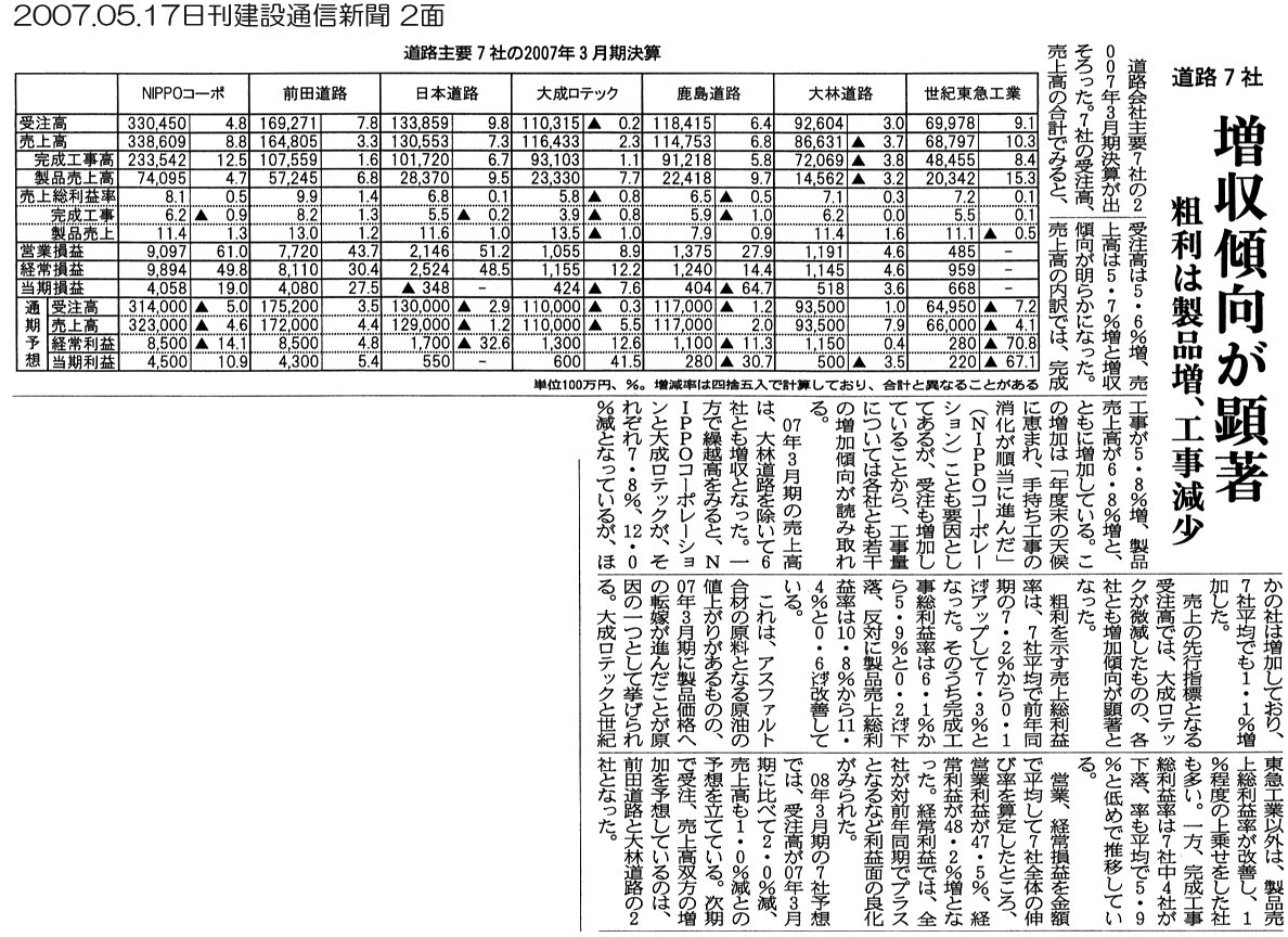 カテゴリー: 2007年の記事, 日刊建設通信新聞