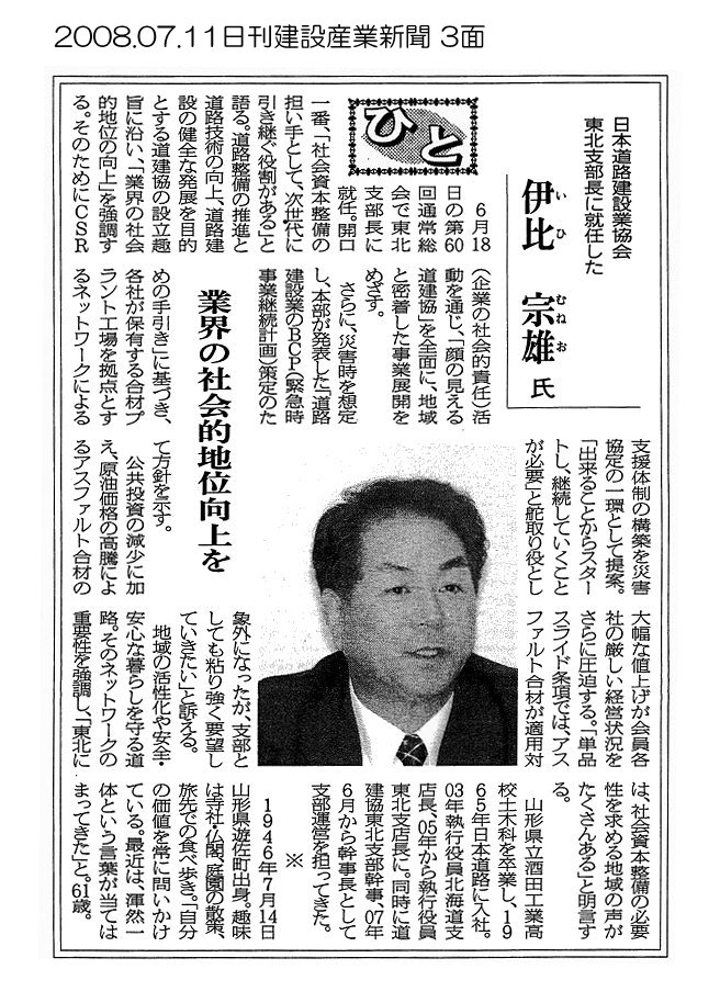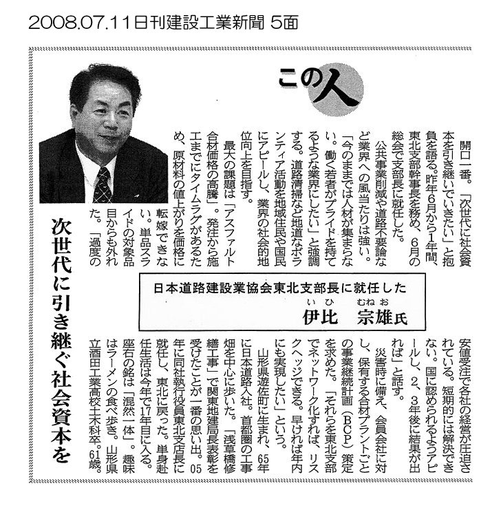 カテゴリー: 2008年の記事, 日刊建設通信新聞