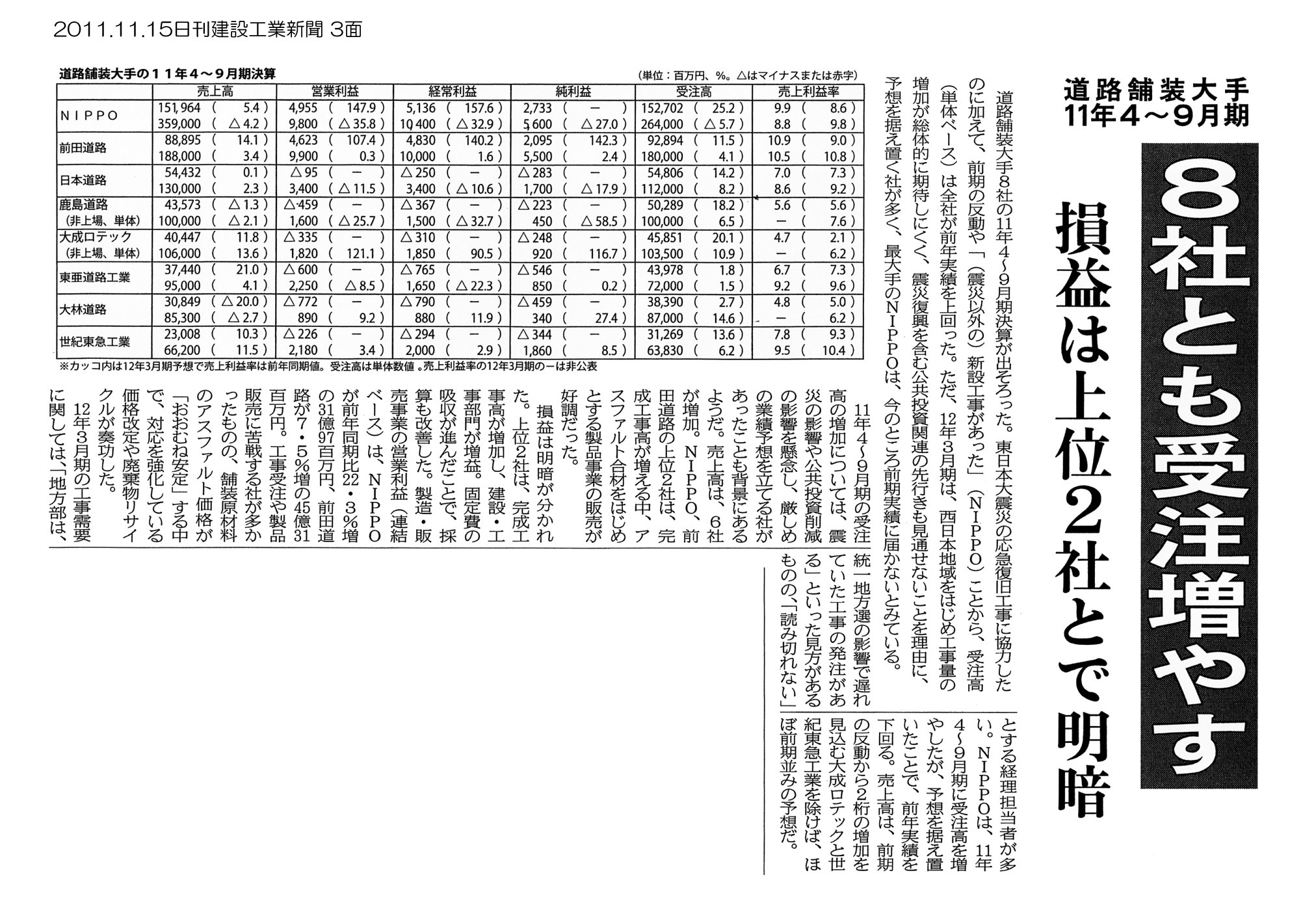2011.11.15日刊建設工業新聞 3面