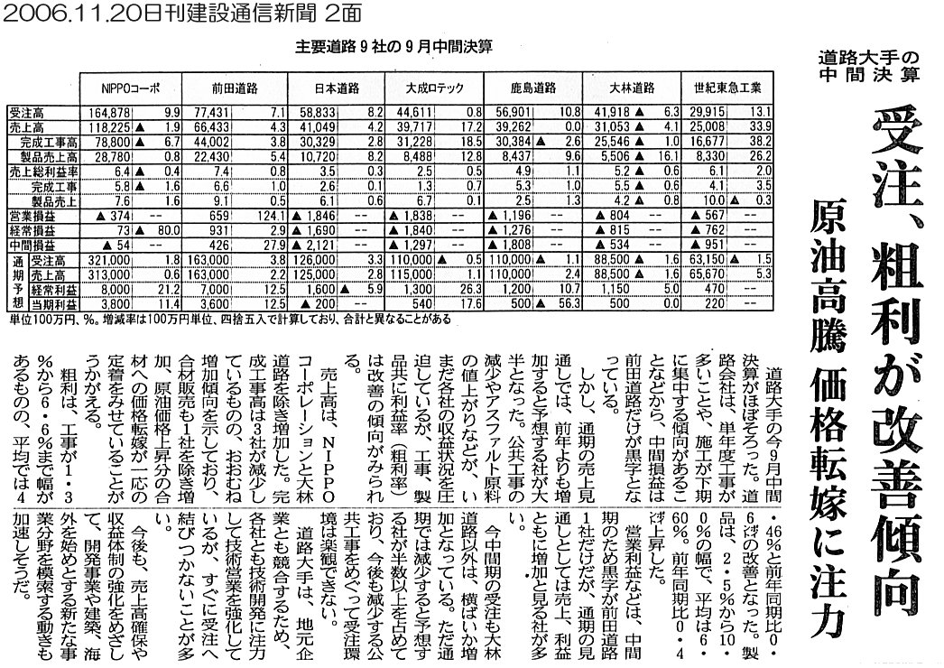 カテゴリー: 2006年の記事, 日刊建設通信新聞