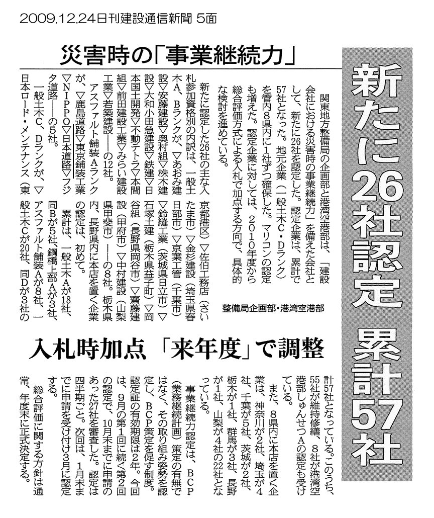 カテゴリー: 2009年の記事, 日刊建設通信新聞