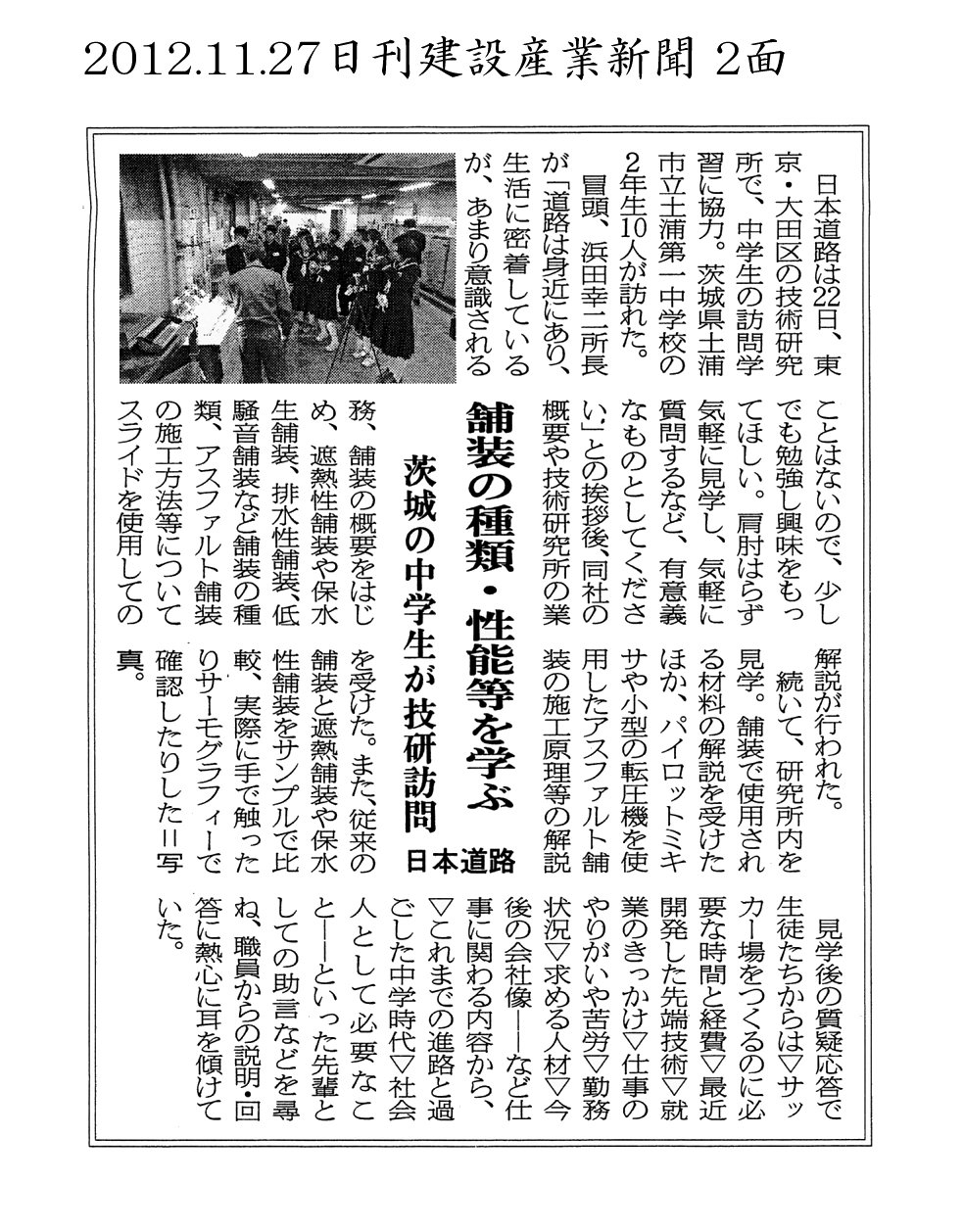 カテゴリー: 2012年の記事, 日刊建設通信新聞