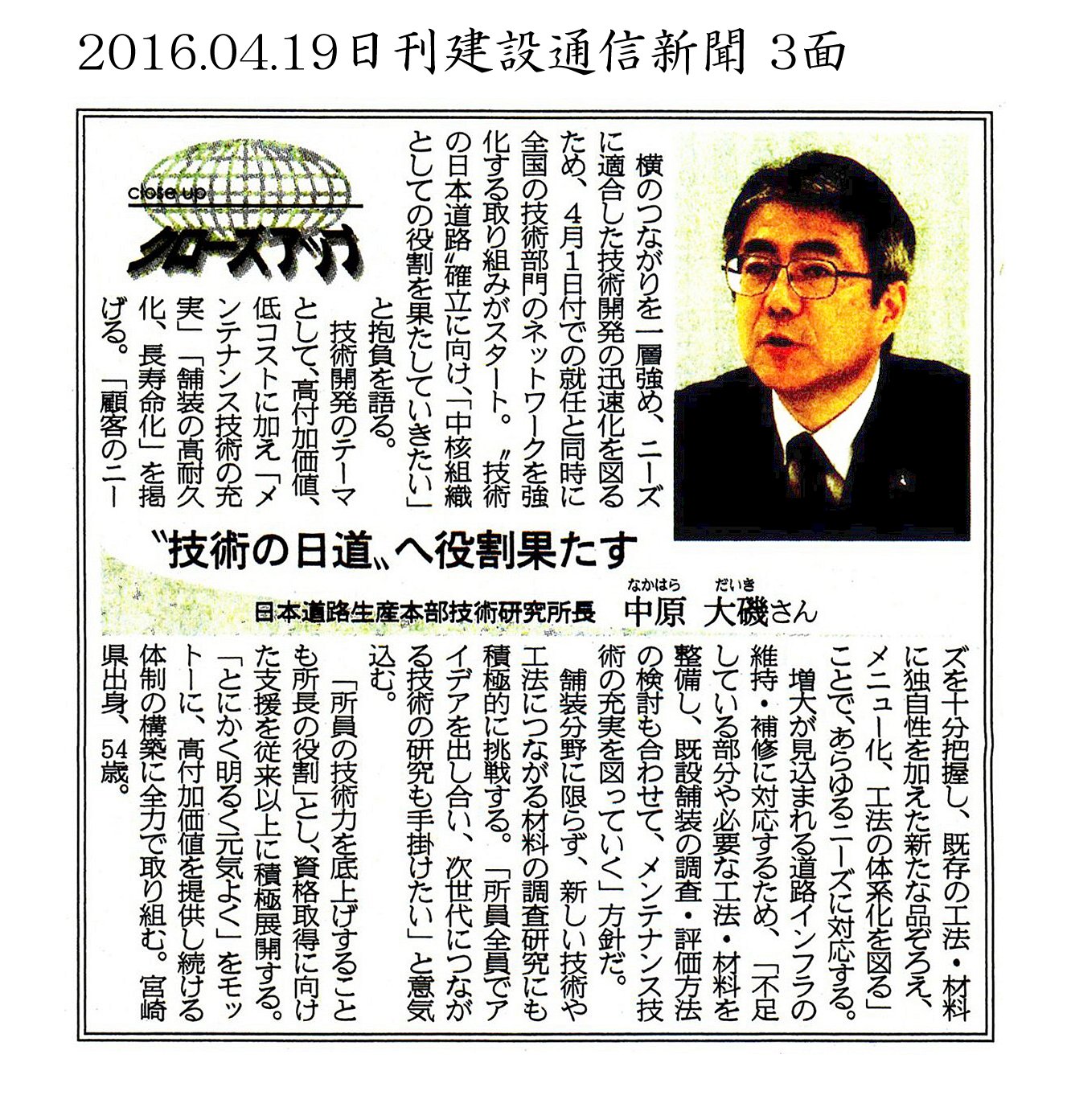 カテゴリー: 2016年の記事, 日刊建設通信新聞